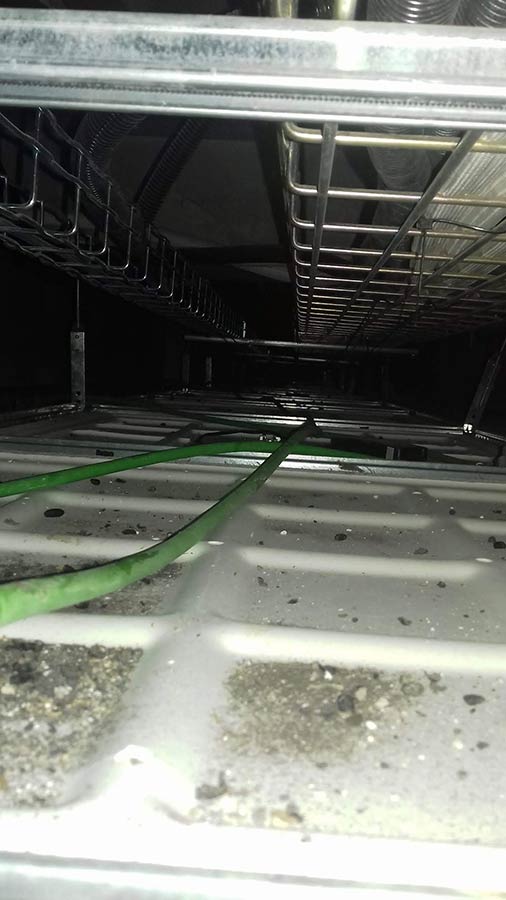 Los roedores se han introducido en el edificio desde la calle, por el pequeño tamaño de las endiduras de la puerta metálica de ventilación. Accediendo desde aquí al interior y falsos techos de los locales comerciales del edificio. Con los consiguientes problemas de rotura de cables, molestias, etc…